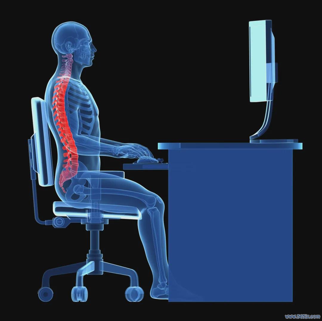 其次,关于久坐一族,微微后倾才是对腰椎压力更小的坐姿。