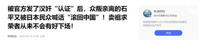 这一下石平但是为他的“汉奸”行动付出了代价,双方王人不受待见,国内钞票被冻结,在日本又只可成为少量数右翼东说念主士的“器具东说念主”,他的下场早就一经注定。