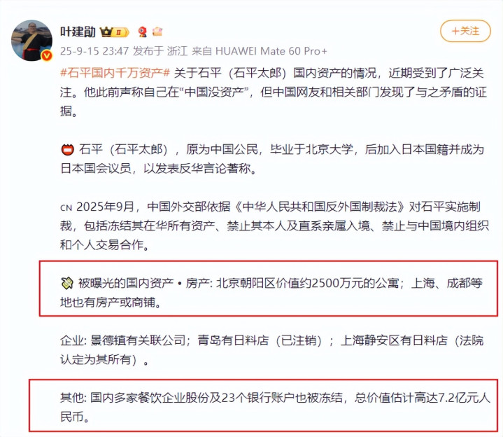 而事件的主东说念主公“二鬼子”石平太郎得老友书后却再也坐不住了,贯穿发了多条动态进行陈述。