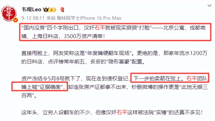 紧接着,这名博主便将石平的产业爆了出来。