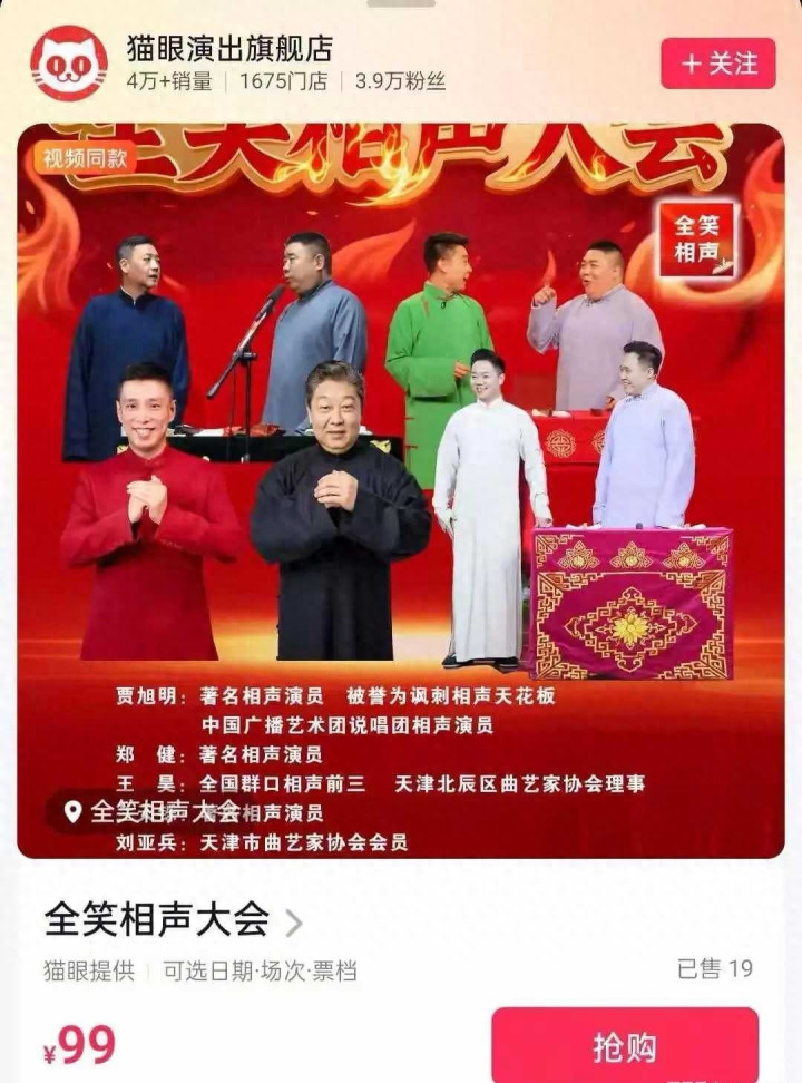 这场献艺的威望绝非松开——领衔的三位都是官方认证的“著名相声演员”,其余五位要么是中国曲协会员,要么是相声大赛一等奖得主,个个经验光鲜。票价从99元到1580元梯度缔造,兼顾了浮浅不雅众与资爱好好者,看似周密的安排,却在市时局前栽了大跟头。猫眼平台表露的19张售票数据,像一记响亮的耳光,打在了“著名”的头衔上。粗算一笔账,八位演员从北京来去承德的高铁费就需2400元,加上食宿开支,仅基础老本就超3000元,而19张廉价票的总收入不及2000元,连路费都填起火的蚀本,号称相声商演史上的“名时局”。