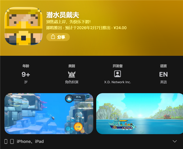 《潜水员戴夫》国服手机版首发扣头价24元(原价30元),现在已在苹果AppStore上架,苹果用户可提前预订。