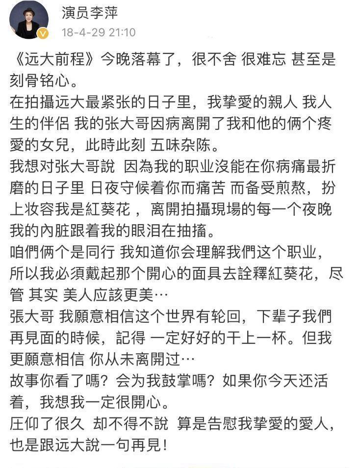 其后李萍在酬酢平台上发了一篇长长的著作,满满的悼念写进字里行间,网友们看着王人忍不住红了眼圈。