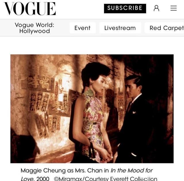 好意思国杂志请安王家卫作品 王家卫在国内水火倒悬,可在好意思国却受到了追捧。 新一期的好意思国VogueWorld盛典好莱坞大秀上,请安了王家卫此前导演的《项目年华》中的“苏丽珍”变装,《项目年华》海报登上了国外版VogueWorld主页。