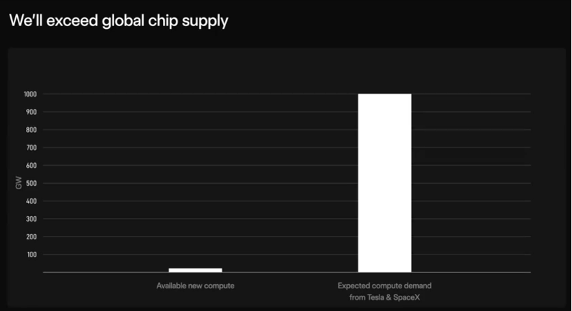 为何一定要下场造芯片?在马斯克看来,现存人人芯片产能根柢无法匹配他将来的需求。