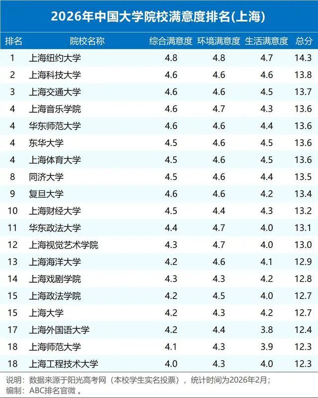 最近,一份反馈2026年上海高校学生就读体验空隙度名次的截至出来。本榜单数据来自于在校学生的真的评分,从概括体验、校园环境、生存要求这三个方面打分。与一般的大学名次所以科研、论文为主的不相通,这份榜单径直反馈了学生的主不雅感受,截至出人意想。
