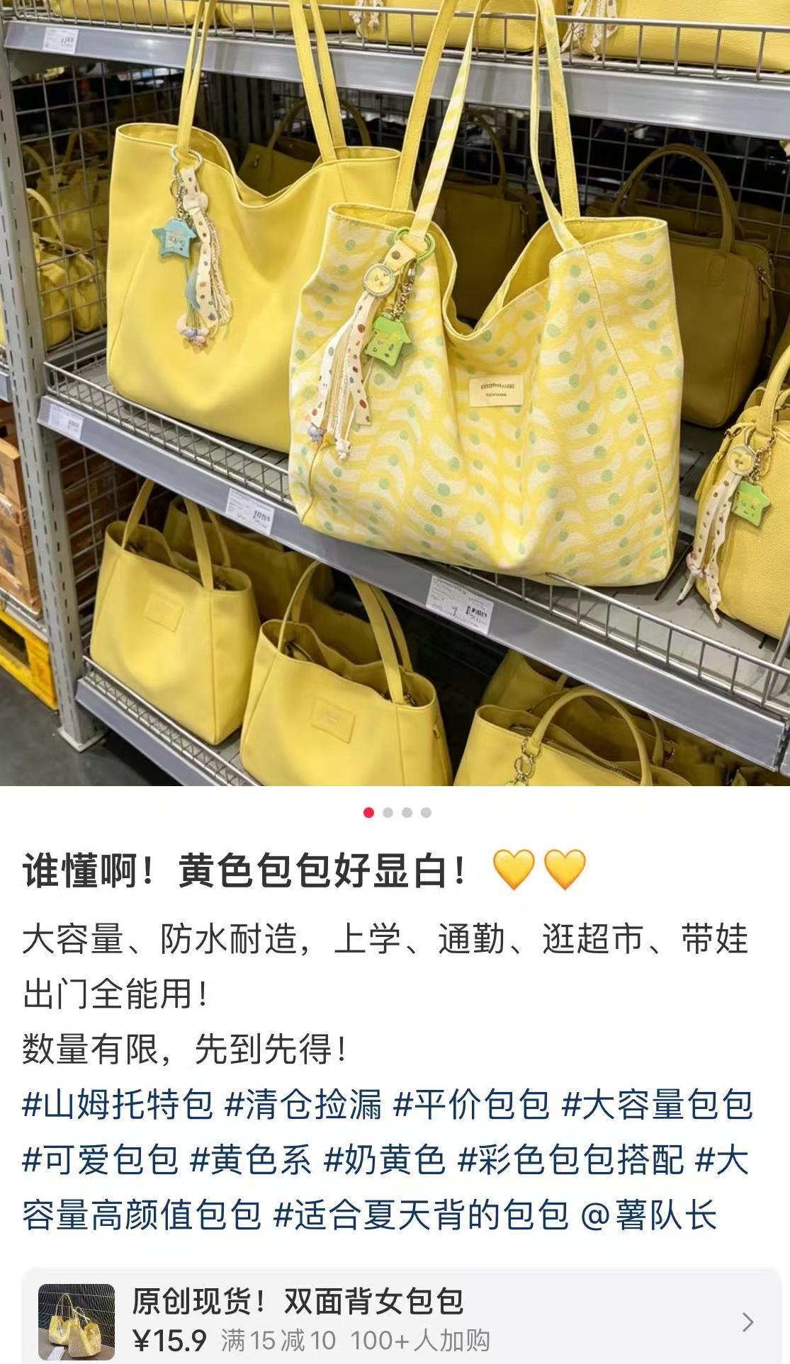极目新闻记者属意到,网传包包有黄色、红色、紫色等多种配色,磋议帖子带上“山姆托特包”“山姆同款托特包”“山姆超市好物”等热点话题,借此引流传播。