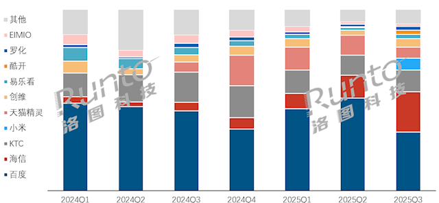 2024-2025Q3 中国移动灵巧屏线上阛阓重心品牌销量份额